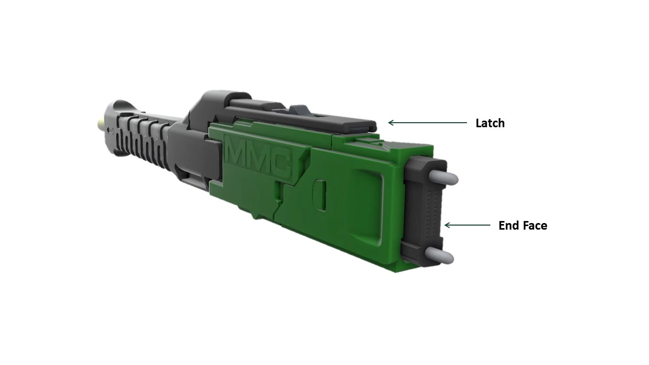 The latch design of the MMC connector uses a single latch and is located away from the optical interface of the TMT ferrule. This design reduces debris generation around the ferrule end face during mating/unmating.