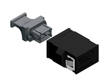 17725, Adapter, MTP®-16 Standard Footprint, Reduced Flange, Opposed Key, Black, 1 Dust Plug